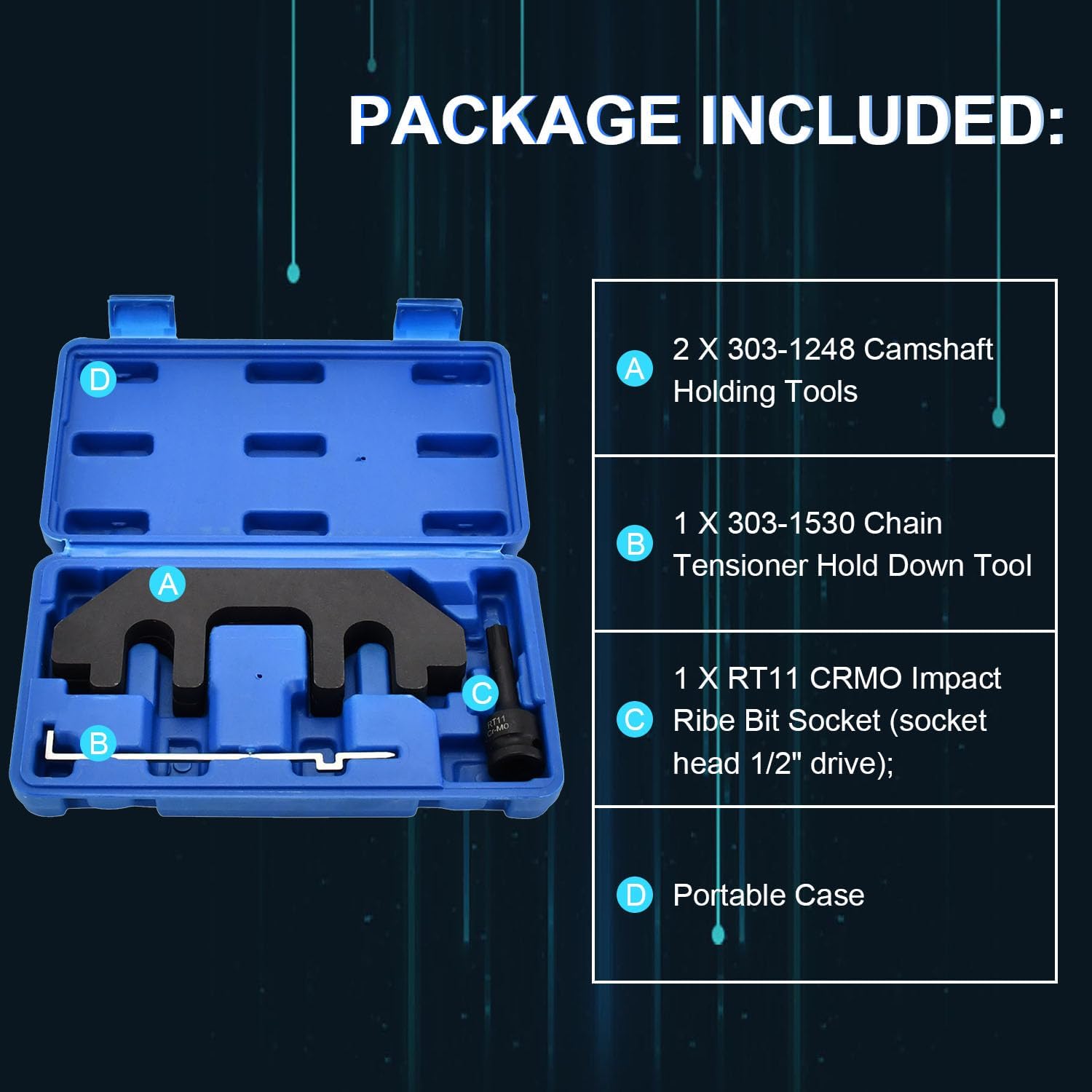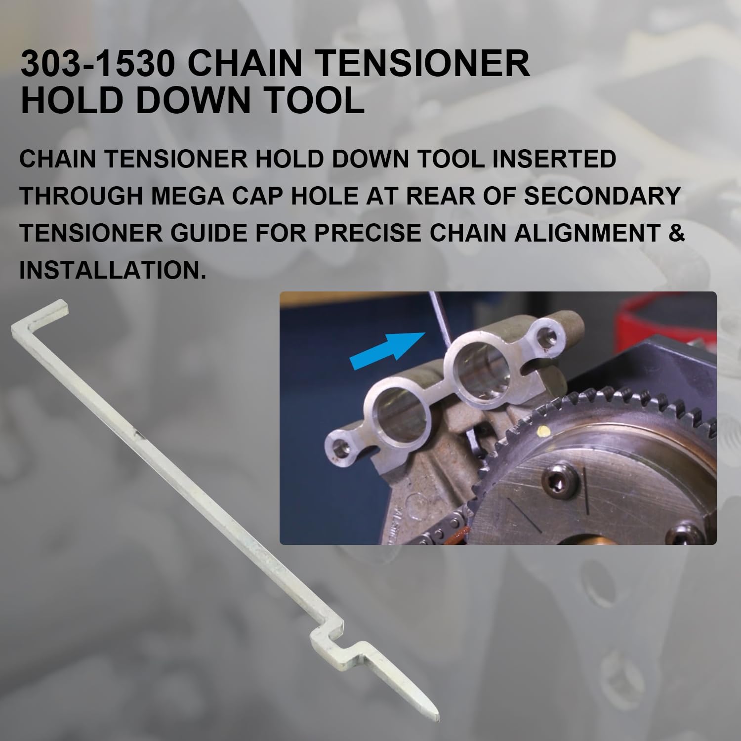 2. USO PREVISTO: utilice esta herramienta para posicionar y alinear con precisión su árbol de levas Ford 3.5L y 3.7L en TDC para realizar el servicio, simplificando el trabajo de la cadena de distribución. Inserte la herramienta de sujeción del tensor de cadena a través del orificio en la parte superior del mega espacio. Colóquelo contra el mega espacio para retener el tensor en la posición comprimida. ¡Obtenga este conjunto de herramientas de sujeción del árbol de levas para ahorrar tiempo y energía en el trabajo del cigüeñal y la cadena de distribución!
