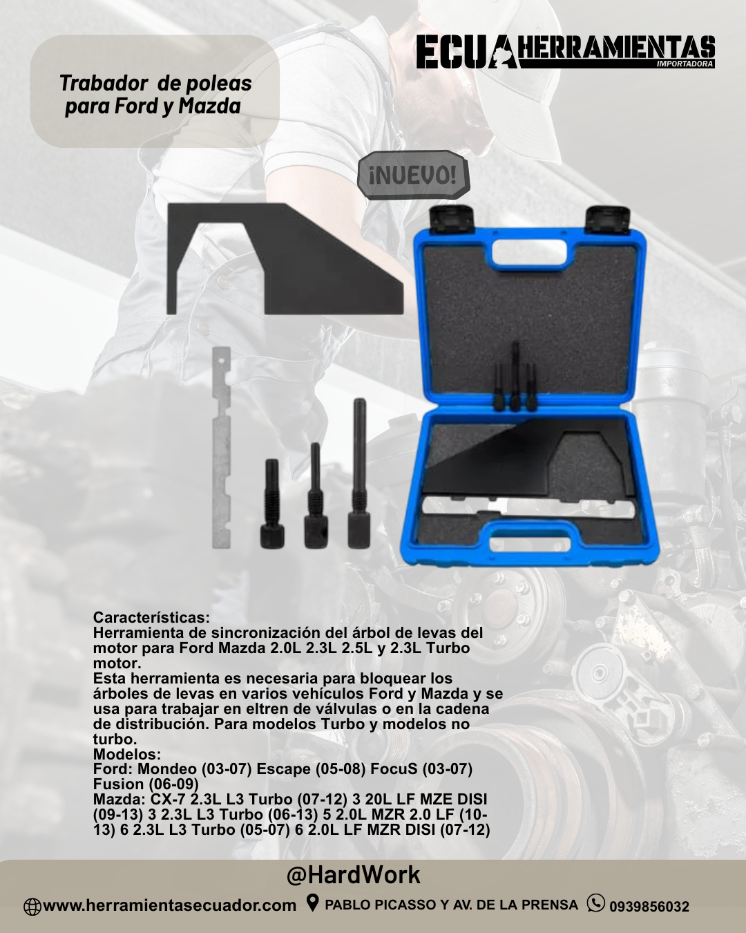 La herramienta para sincronizar motor Ford y Mazda 2.0, 2.3 y 2.5 de UTOOLS es un combo diseñado para garantizar una alineación precisa del motor, esta herramienta facilita el proceso de sincronización, optimizando el rendimiento del vehículo y prolongando su vida útil.