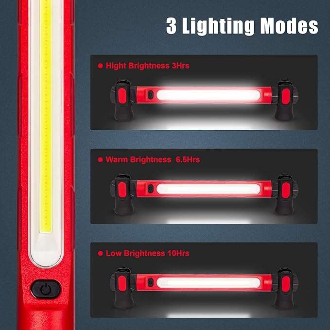 - Luz de trabajo superbrillante: la luz de trabajo LED Stanlips cuenta con una placa COB de 9.6 pulgadas que puede producir hasta 3000 lm de alto brillo (6500 K). El módulo de chip emisor de luz COB de 9.2 pulgadas de largo emite luz desde un ángulo de 160 grados para cubrir completamente tu área de trabajo. La elección de brillo de 3 niveles satisface tus necesidades para diferentes escenas de trabajo, e ideal para uso diario y actividades al aire libre como iluminación del hogar, automóvil. reparación, inspeccionar , solución de problemas, etc.